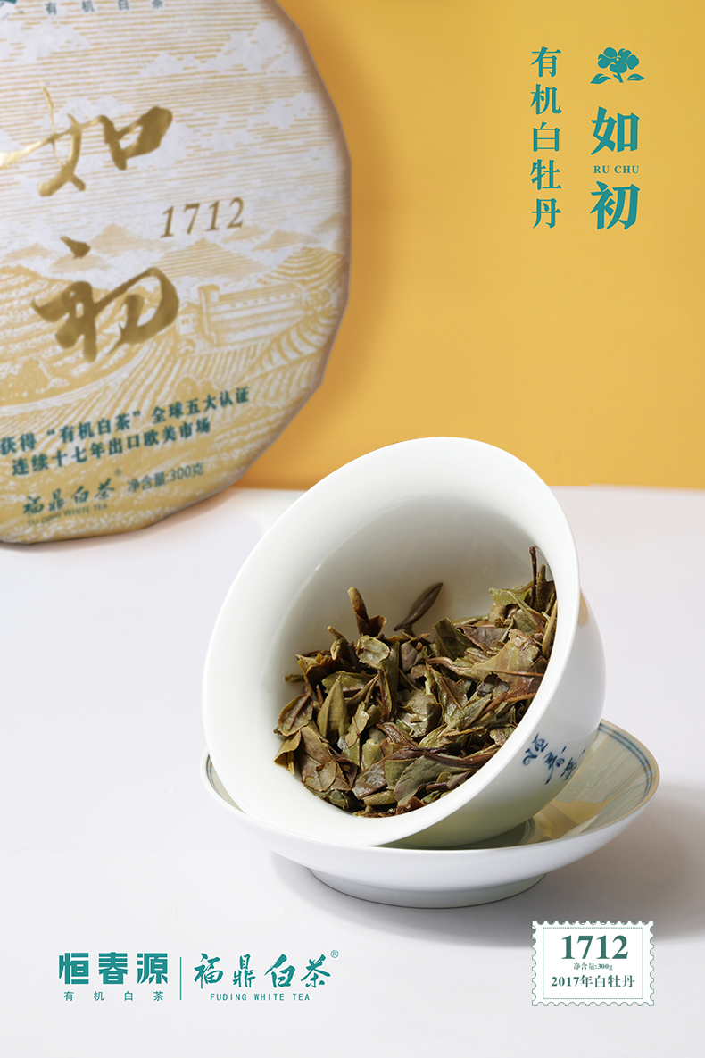 產(chǎn)品名稱:如初1712(緊壓白茶) 全國(guó)統(tǒng)一零售價(jià):2300元/餅 配 料:2017年有機(jī)一級(jí)白牡丹 凈 含 量:300g 生產(chǎn)日期:見(jiàn)噴碼 保 質(zhì) 期:適宜長(zhǎng)期保存,十五年之內(nèi)飲用最佳 貯存方法:密封、避光、防潮、防異味