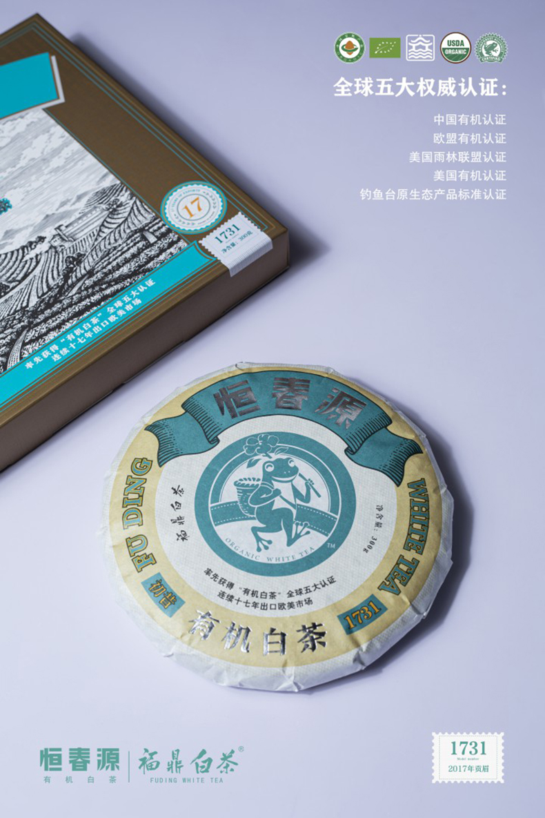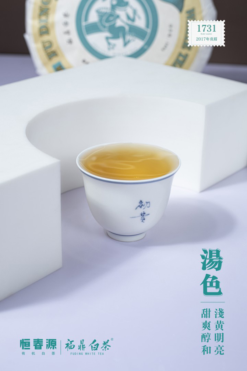 產(chǎn)品名稱:初昔1731(緊壓白茶) 全國統(tǒng)一零售價(jià):1260元/餅 配 料:2017年一級(jí)貢眉 凈 含 量:300g 生產(chǎn)日期:見噴碼 保 質(zhì) 期:適宜長(zhǎng)期保存,十五年之內(nèi)飲用最佳 貯存方法:密封、避光、防潮、防異味