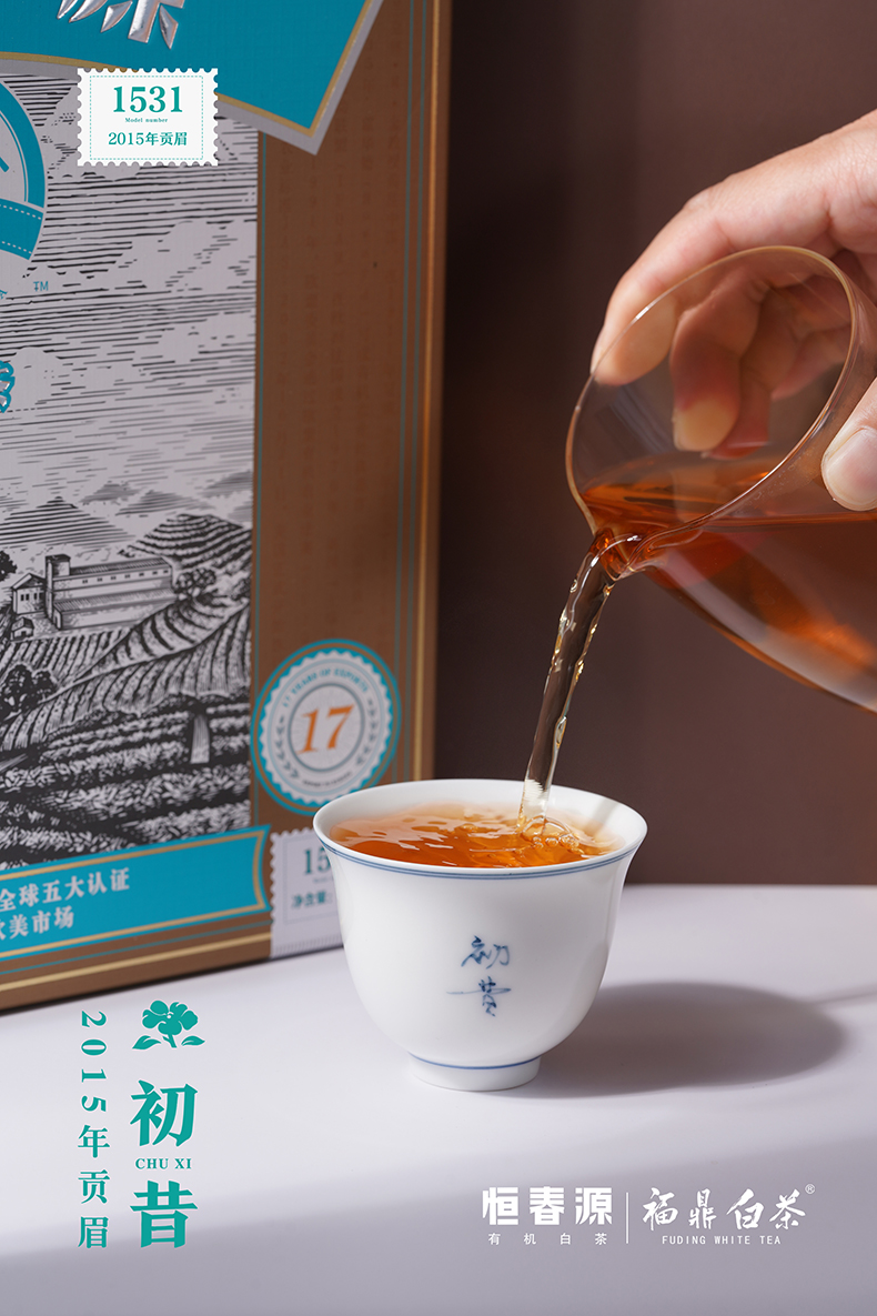 產(chǎn)品名稱:初昔1531(緊壓白茶) 全國統(tǒng)一零售價(jià):2180元/餅 配 料:2015年一級貢眉 凈 含 量:357g 生產(chǎn)日期:見噴碼 保 質(zhì) 期:適宜長期保存,十五年之內(nèi)飲用最佳 貯存方法:密封、避光、防潮、防異味
