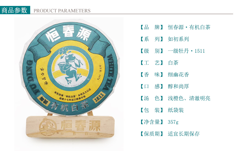 產(chǎn)品名稱:如初1511(緊壓白茶) 全國統(tǒng)一零售價(jià):3880元/餅 配 料:2015年一級白牡丹 凈 含 量:357g 生產(chǎn)日期:見噴碼 保 質(zhì) 期:適宜長期保存,十五年之內(nèi)飲用最佳 貯存方法:密封、避光、防潮、防異味