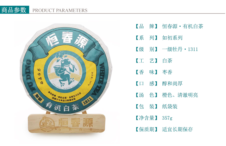 產(chǎn)品名稱:如初1311(緊壓白茶) 全國統(tǒng)一零售價(jià):6400元/餅 配 料:2013年一級白牡丹 凈 含 量:357g 生產(chǎn)日期:見噴碼 保 質(zhì) 期:適宜長期保存,十五年之內(nèi)飲用最佳 貯存方法:密封、避光、防潮、防異味